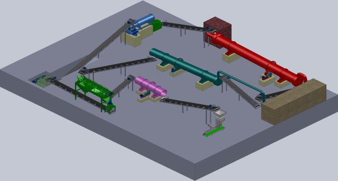 篩分過(guò)程是由滾筒篩分機(jī)將不合格的顆粒篩選出來(lái)。不合格的顆粒將由輸送機(jī)輸送至攪拌機(jī)重新加工,合格的有機(jī)肥由自動(dòng)包裝機(jī)進(jìn)行包裝。