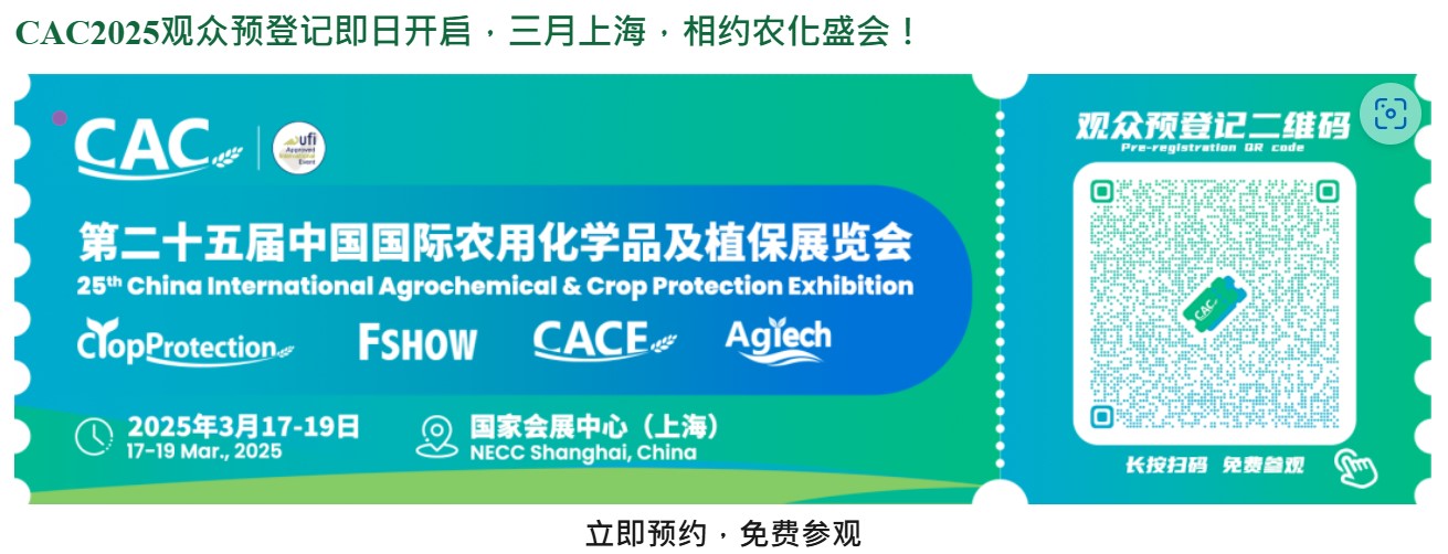 第二十五屆中國國際農(nóng)用化學(xué)品及植保展覽會(CAC2025)將于2025年3月17-19日在國家會展中心(上海)舉辦。