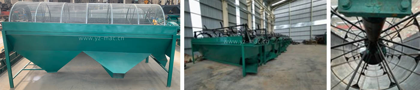 滾筒式篩分機(jī)設(shè)備是利用旋轉(zhuǎn)振動(dòng)搖動(dòng)等動(dòng)作,將各種物料經(jīng)過(guò)篩網(wǎng)分別按物料粒度大小分成若干等級(jí)入料。滾筒篩分機(jī)是由滾筒、機(jī)架、漏斗、減速機(jī)、電動(dòng)機(jī)等五個(gè)部分構(gòu)成。物料由進(jìn)料口進(jìn)入滾筒后,一方面隨著滾筒轉(zhuǎn)動(dòng)而被篩選,一方面粒度大的物料沿著滾筒的斜度向前流動(dòng),通過(guò)不同孔徑的篩網(wǎng)逐步被篩出。物料篩出后落入各自的漏斗,然后由人工或皮帶輸送至成品區(qū)。