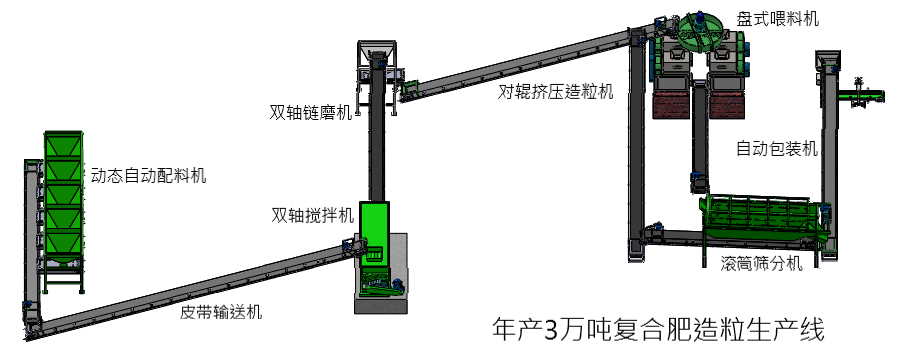 - 產(chǎn)線簡介: 無烘干擠壓造粒生產(chǎn)線可以生產(chǎn)各種作物的高、中、低濃縮復(fù)合肥。該生產(chǎn)線無需干燥,投資小,能耗低。 無烘干擠壓造粒的壓輥可設(shè)計(jì)成不同形狀和尺寸從而可擠壓生產(chǎn)出不同尺寸形狀的顆粒。